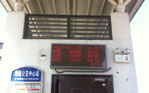 电子发车屏上主要显示了发车线路的当班车号、发车时间等多项信息,屏幕上还有电子时钟,方便乘客校对时间。按照电子发车屏上显示的信息及语音提示,乘客能更快、更方便地查找到自己要乘坐的公交车辆。