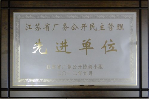 集团公司被评为江苏省厂务公开民主管理先进单位