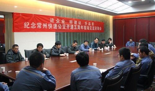 12月21日快速公交开通五周年现场交流咨询会在南车戚墅堰机车车辆工艺研究所有限公司召开,来自公交巴士公司的领导与该厂职工代表们就快速公交建设、线网优化、服务运营等问题进行了面对面交流,员工们热情参加了此次活动。中国南车戚墅堰所团委书记郭冬泽对公交主动走进企业倾听职工意见表示欢迎。他说,快速公交开通五年来,为市民出行提供了便捷、优质的服务,这与广大公交人的努力付出是分不开的,常州公交未来的发展必将会更加美好灿烂。