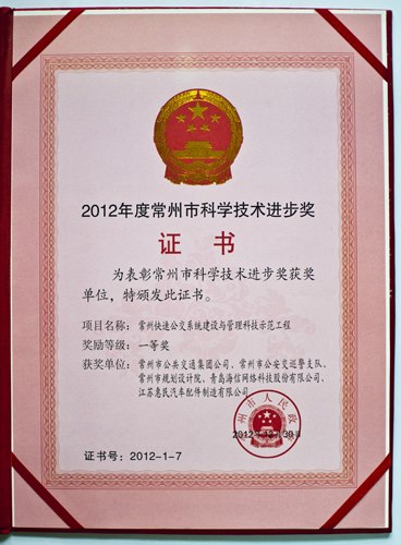 昨天,全市科技创新推进会在市行政中心召开,常州快速公交荣获科学技术进步一等奖。