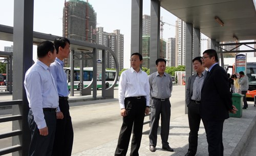 图为集团公司董事长、总经理蔡健臣查看永宁北路中心站运营情况