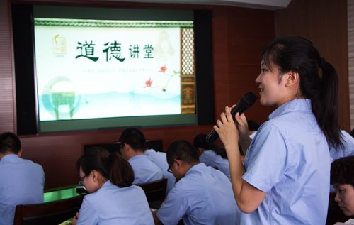 “道德重如山,道德贵似金,人生道路上有德才能行”一曲发自内心的《公民道德歌》合唱拉开了本次活动的序幕。在欣赏完2012年感动中国十大人物之—陈斌强《孝更绝伦足可矜》的感人故事后,“中国好人榜·孝老爱亲好人”韩彤结合生活实际畅谈了自己对孝老爱亲的理解,并讲述了她三世同堂的幸福故事。八年里,她一颗心装满家庭冷暖,将八口之家的“吃、穿、用、度”扛在肩上,她放弃了金钱、舒适换来了爱情、亲情,用至孝昭示着超越平凡的勇气,用大爱诠释了舍与得的真谛。她的感人事迹触动了在场所有人的心灵。随后,在道德宣讲员陆晓丽的带领下,与会人员一起诵读经典,重新温故了“谁言寸草心,报得三春晖。”这句诗句的内在真谛。道德是可以互相感染、互相支撑、互相传递的力量,在倾听过韩彤的故事,解读完孝的定义后,活动进入第四个环节:发善心,各分公司职工代表积极发言,交流分享自己的心得感悟。活动最后,集团公司也准备了一份小小的礼物,为在场所有人员赠送道德小书签。伴随着音乐《好人就在身边》的响起,本次“道德讲堂”活动圆满结束。(宣传部 王赟)