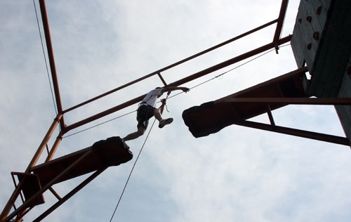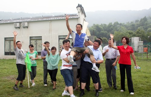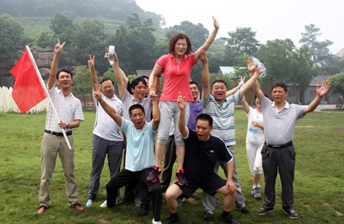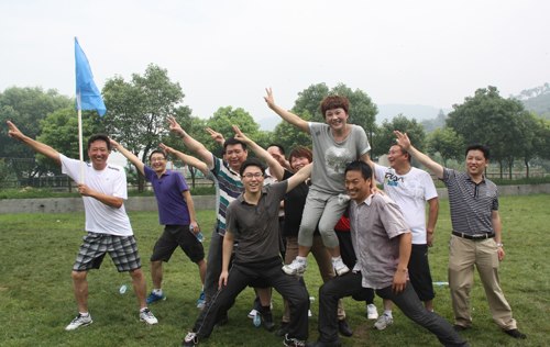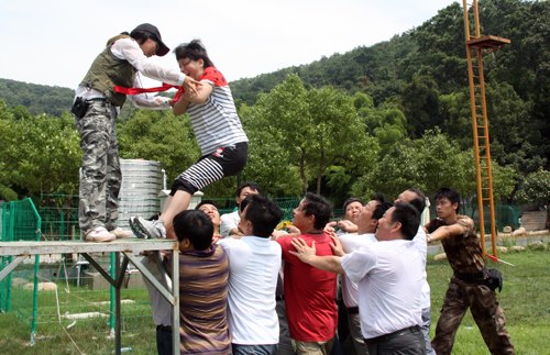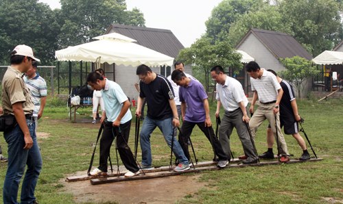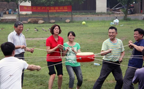 拓展前,大家组成了“神州”、“蛟龙”、“超越”等四个队,并分别进行了队型、队歌等才艺展示,体现了良好的团队精神风貌。随后在教练的指导下,大家共同挑战了“有轨电车”、“同心鼓”、“信任背摔”、“相依为命”和“空中断桥”5个竞技项目。每当开展拓展项目前,队员们都认真在一起商量最佳的方法、决窍,群策群力;每当个别队员在活动中出现畏难情绪时,队友们及时予以鼓劲、加油,为其增添了信心和勇气;每当队员完成拓展项目后,队友们又热烈地给予掌声和欢呼声。通过此次拓展,使大家充分感受到了团结、鼓励、信任对团队的重要性。