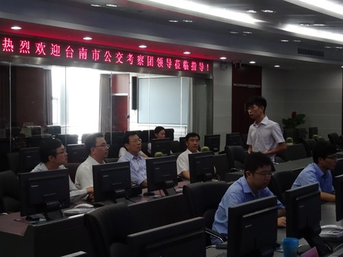 8月15日,台南市交通局局长张政源一行来到常州公交集团,参观考察快速公交的规划、建设和运营情况。市交通运输局副局长曹建中、集团公司董事长、总经理蔡健臣、原常务副总经理孙鲁明、副总经理朱向军、副总经理吴强陪同考察。