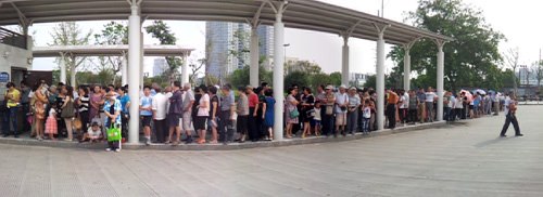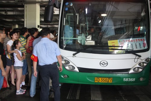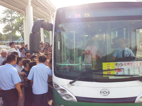 当天上午专线首班车未发之前,两条专线始发站早已排起了长队,集团公司除启用现场备用车辆外,还从所属各汽车公司紧急调取车辆赶往淹城与客运中心站,及时疏散聚集客流。疏散完高峰客流后,集团公司主要领导立即组织各汽车公司人员在淹城公交中心召开了紧急会议,对现场秩序维护、瞬间客流疏散、场站设施安装等方面作了进一步部署与安排,以确保花博会期间运输工作有序、高效。