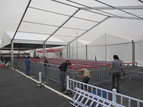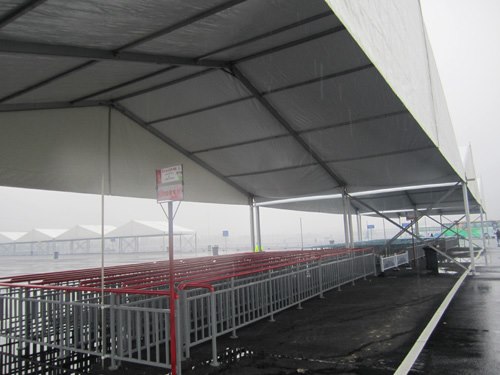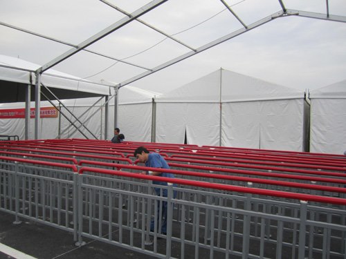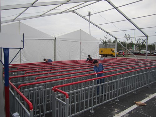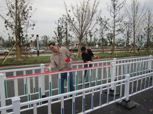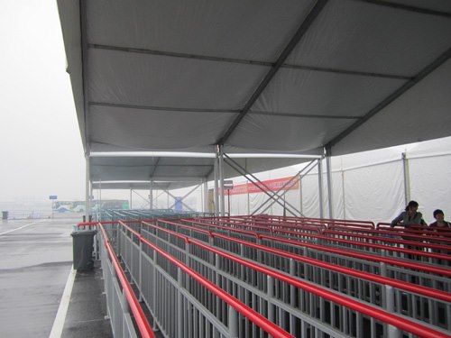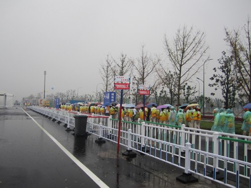 为保证客流的及时安全运输,常州公交特作人性化设计,制作护栏435米,分兰、红、绿3色候车区域,分别对应于1号、2号、3号公交专线车。另外还设有应急通道,用三角旗标识。出园人群可通过醒目的颜色、站牌的提示,迅速寻找到出园相应专线,确保了候车、出园的安全有序,利于疏散。除此,还配有公交志愿者的引导。