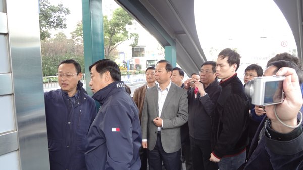 在公司董事长、总经理蔡健臣的陪同下,于秉华一行从通江路汉江路站乘上一辆快速公交,沿途体验了一号线和二号线,并参观了西林公园公交枢纽。在公交信息指挥中心,蔡健臣详细介绍了快速公交、掌上公交和公交信息化建设等内容,双方还就企业管理、政府扶持政策、超级巴士等专题进行了座谈交流。
