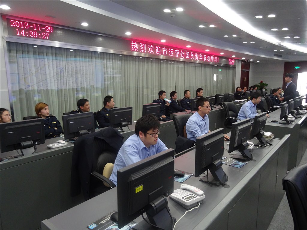 11月29日下午,运管处团委副书记赵舒宽带领15名团员青年来到集团公司交流学习团工作。团委干事眭佳、服务中心主任戴建红、信息指挥中心综合管理科副科长李永杰陪同参观。
