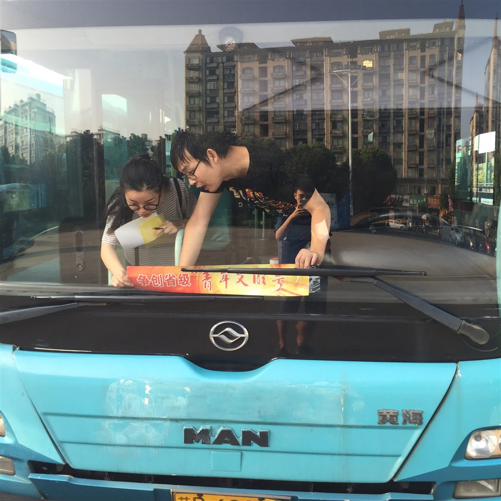 “青年文明号”集体根据自身特色和服务特点,分别制作了高质量的微信宣传页,并通过微信分享的途径进行宣传推广,相互交流创建经验;集团公司团委还统一制作了“青年文明号”集体创建展板,以集体成员佩戴“青年文明号”标识牌、驾驶员工号牌张贴LOGO、制作服务牌等方式,亮出“青年文明号”集体成员身份,展现青年良好精神风貌;同时,集体成员还积极做好车厢卫生、办公环境、服务水平提升工作,做到环境卫生不倒退,服务水平再提升。