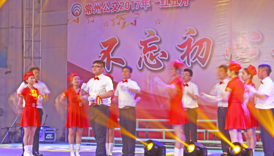 晚会进行中,沈小勇、于德江上台分别向集团公司董事长、总经理袁杏娣,B1线驾驶员施建刚授予市“五一劳动奖状”奖牌和市“劳动模范”证书。袁杏娣表示,常州公交将以打造更高水平的、人民满意的现代化和谐公交为愿景,以创建国家公交都市、江苏省公交示范城市为指引,全面提升企业软实力,服务为民,实干为民,为种好常州幸福树做出公交人积极的贡献。随后,沈小勇作了热情洋溢的讲话。他指出,公交“红五月”已坚持举办了12年,不仅成为了公交企业文化建设的重要平台,也成为了常州公交,甚至是市交通运输局的文化品牌。他希望广大公交职工不忘“全心全意为人民服务”的这一初心,通过“红五月”,弘扬企业精神,提振精气神,积极将常州公交打造成为百姓公交、民生公交和品质公交。