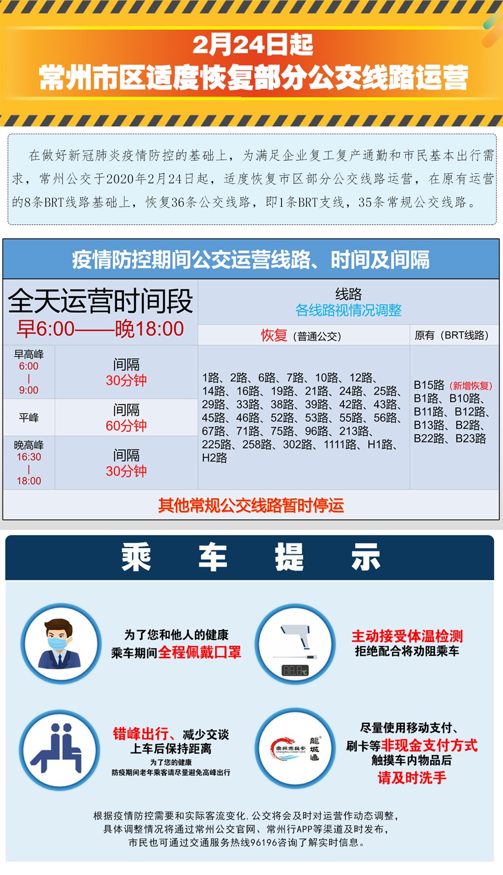 一图知晓:2月24日起,常州市区公交适度恢复运营