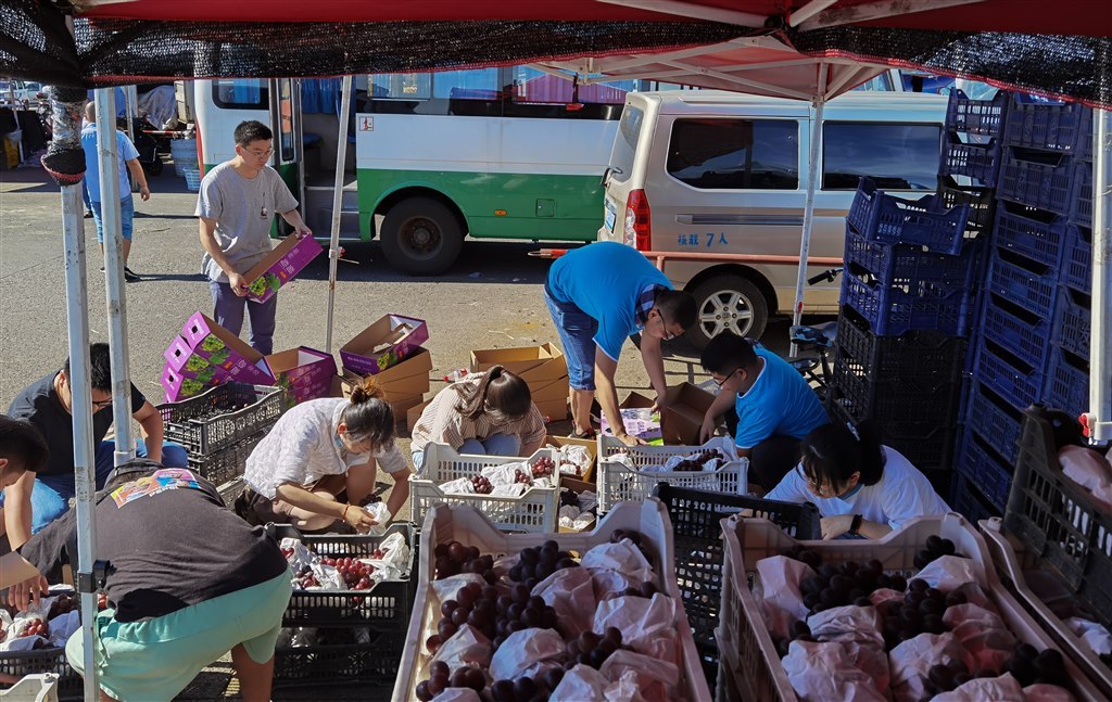 活动前一天,集团公司团委前往凌家塘批发市场现场货比三家预定了一批葡萄。8月12日一大早,团委负责人朱晨翔带领各基层团干十余人来到凌家塘批发市场对当天凌晨运达的葡萄进行分装打包。烈日炎炎,团干们挥汗如雨,虽然汗水浸湿了衣物,但个个脸上洋溢着喜悦的笑容。